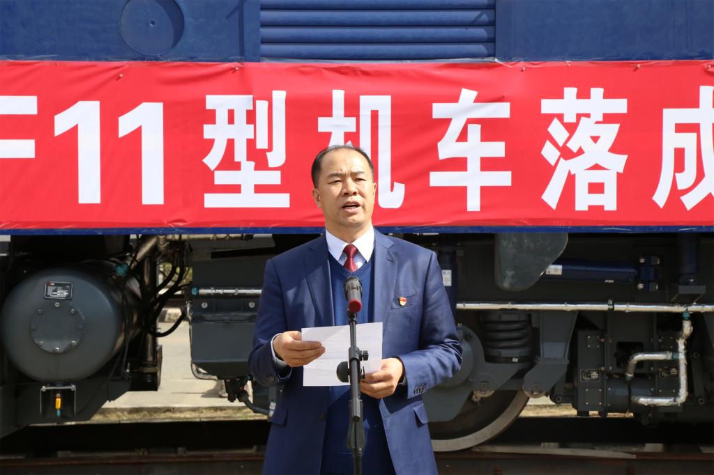 交接仪式上,战高峰与胡越平为“火车头”落成剪彩,曹炳志致辞,王华与周海交接了东风11型机车合格证书及使用手册。