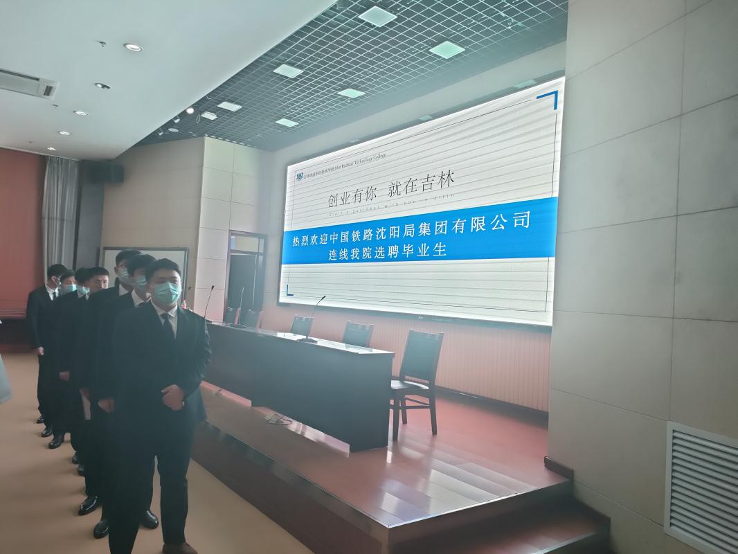 月博mg摆脱 处依照疫情防控要求和沈阳铁路局面试需求,严格布置面试现场,在确保防控规定的前提下,有序组织学生进行线上面试,保障了就业工作的正常进行。