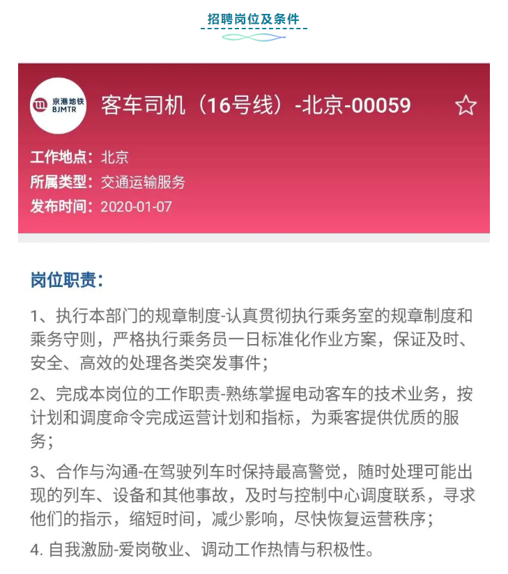北京京港地铁有限公司发布招聘公告