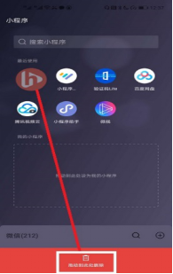 2)如进入后显示为其他学校就业小程序,说明您可能关注过其他学校小程序,请在微信沟通列表中下拉,删除慧就业小程序(长按慧就业小程序,拖拽至垃圾箱,如下图所示)后从微信公众账号重新进入小程序。
