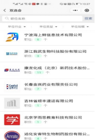 进入会场请搜索查看您专业对口的用人单位,点击单位名称查看用人单位信息和发布的职位信息,点击职位名称,进入职位详情。