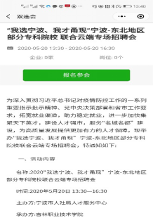 1.主办方吉林职业技术学院报名与参会:在本校双选会列表中点击本场双选会进入详情,点击“报名参会”button报名或在线入场参会