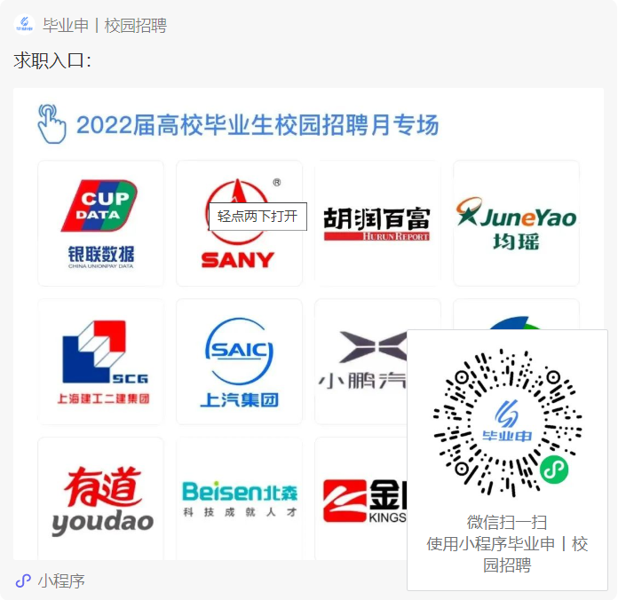 找名企:按照行业属性,搜索心仪企业;找岗位:按照职位类型,查找意向工作;看反馈:点击“我的”,查询HR反馈进度;