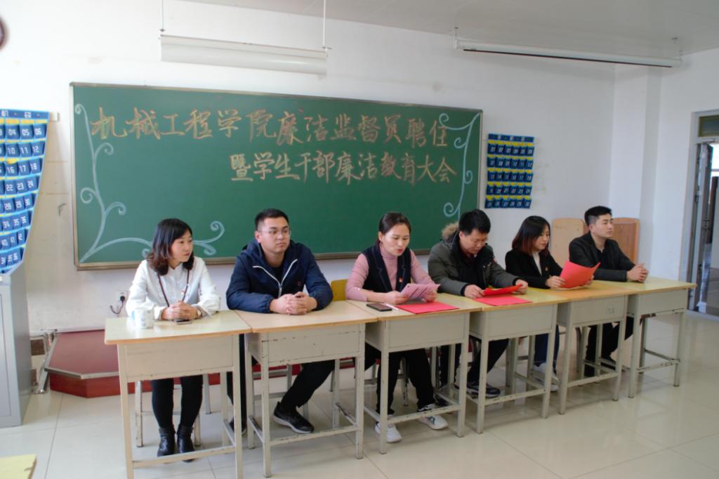 为更好的加强学生干部队伍的廉洁教育,加大党风廉政监督力度,机械工程学院学生党支部和全体学生干部,于10月31日举行了“廉洁监督员聘任暨学生干部廉洁教育会”。参加本次会议的有机械工程学院党总支纪检监察委员董大伟、学生党支部书记王婧婧、团委书记罗伟,辅导员邹慧、辛鹏、李庆博。会议由王婧婧主持。