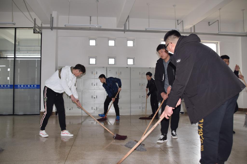 13:30分,王瑞玲老师、杨春来老师一同带领第22期积极分子来到四号实训基地,并组织学员对一楼、二楼、三楼的车辆、机械设备、窗台地面进行了清扫。在活动现场,同学们积极勤奋,互相团结。经过两个小时的清扫,实习基地焕然一新。
