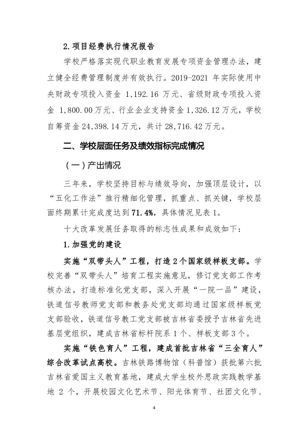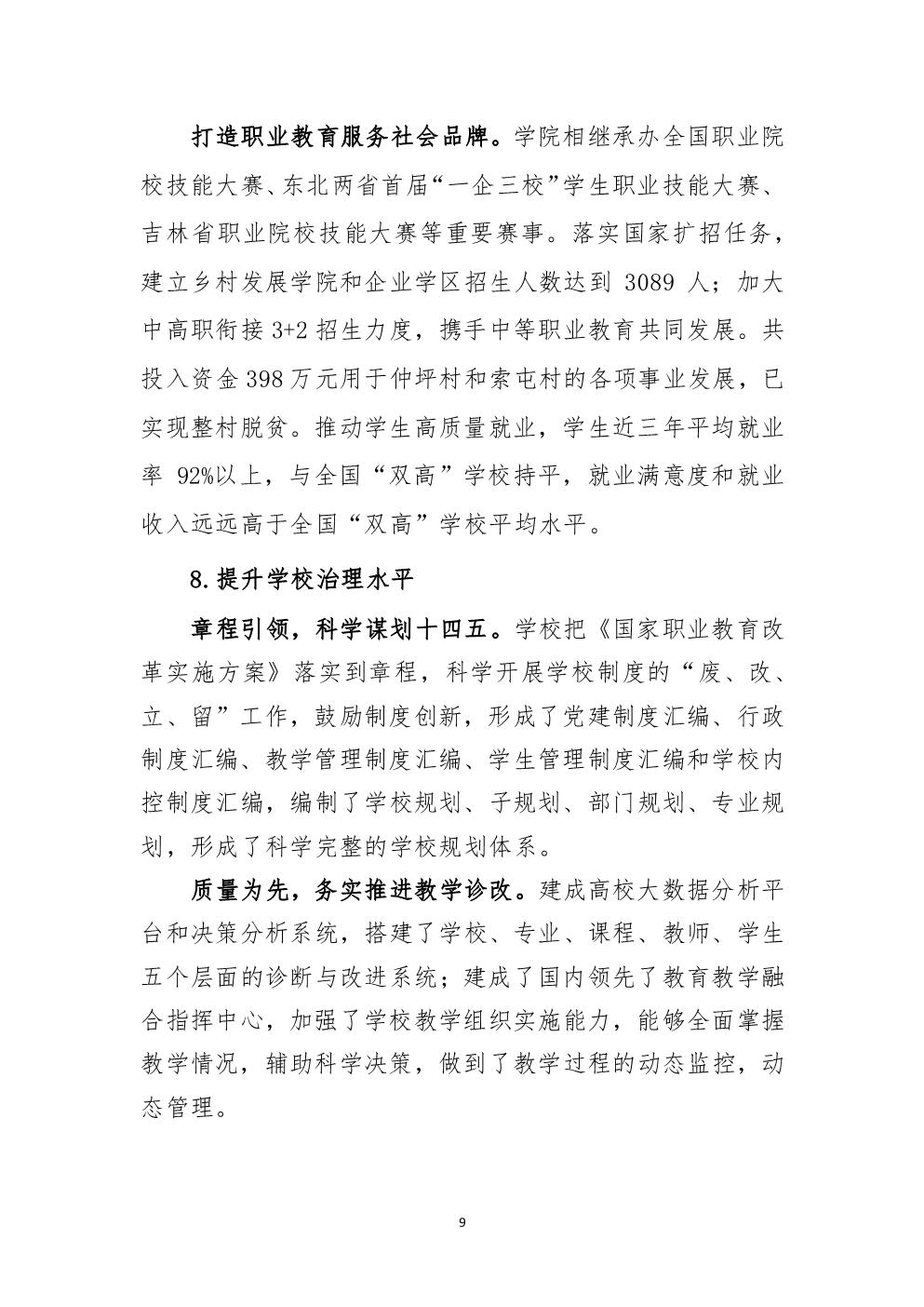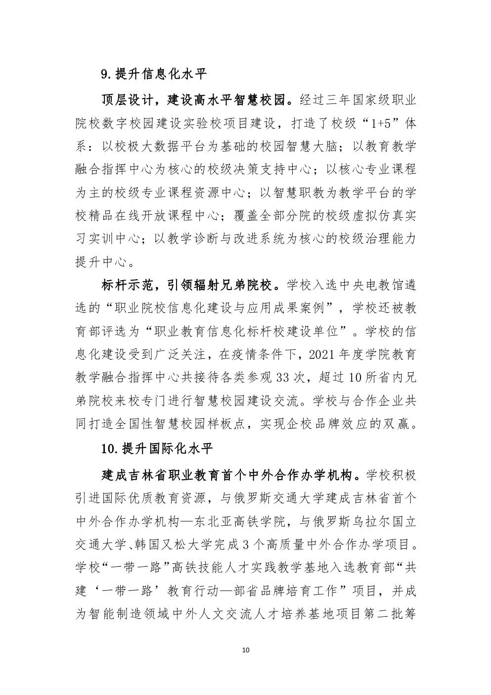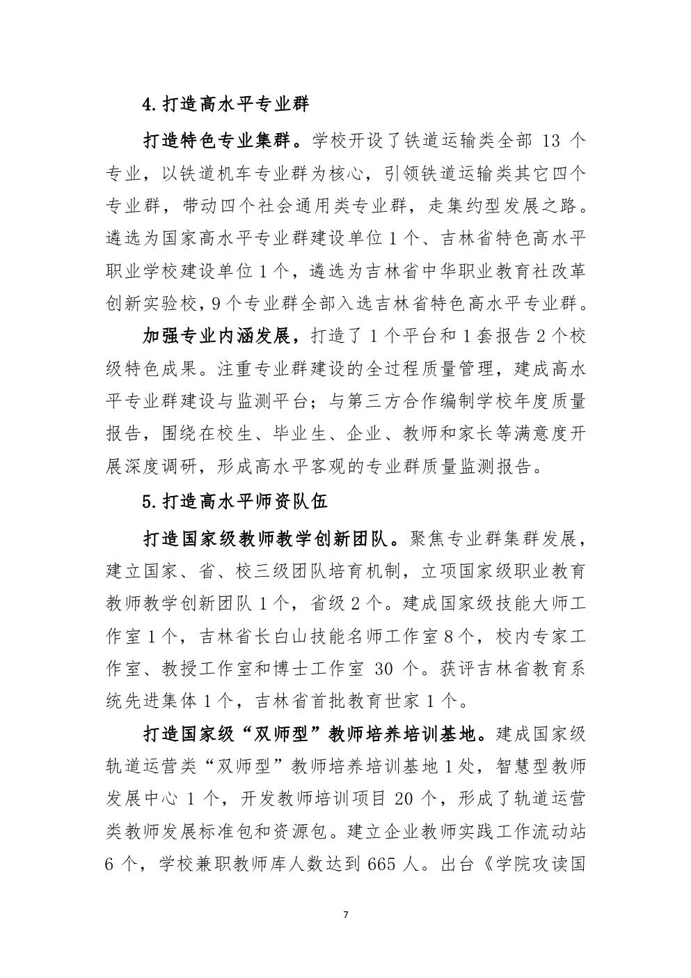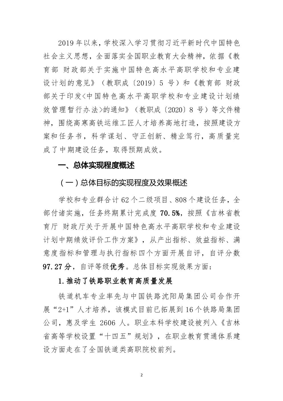 根据吉林省教育厅、吉林省财政厅《关于印发《中国特色高水平高职学校和专业建设计划中期绩效评价吉林省工作方案》的通知》(吉教联〔2022〕12号)要求,学校于2022年5月起组织开展“双高计划”建设中期绩效自评工作,现将自评报告进行公示。