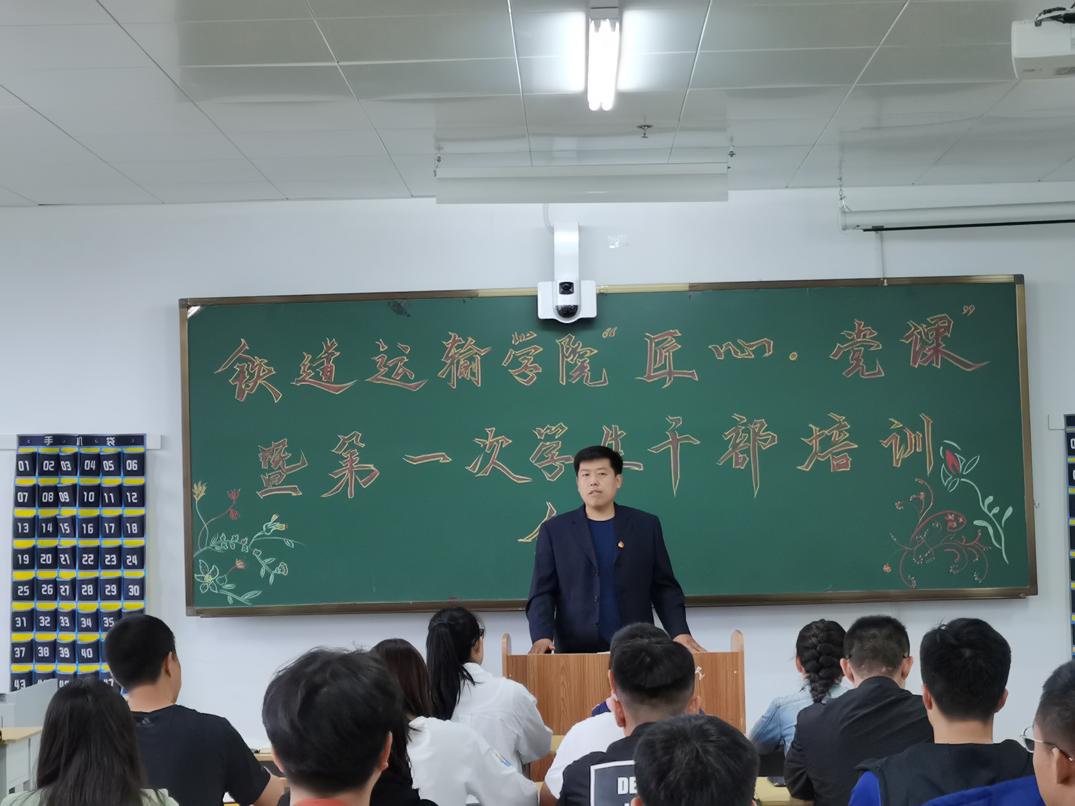 2020年9月8日下午,在教学楼917教室,铁道运输学院开展“匠心”党课暨第一次学生干部培训会议,党总支书记张鑫讲授“匠心”党课第一课。“匠心”党课是铁道运输学院“五匠五心”党建品牌系列活动之一,学院全体学工教师、2019级主要学生干部参加培训。