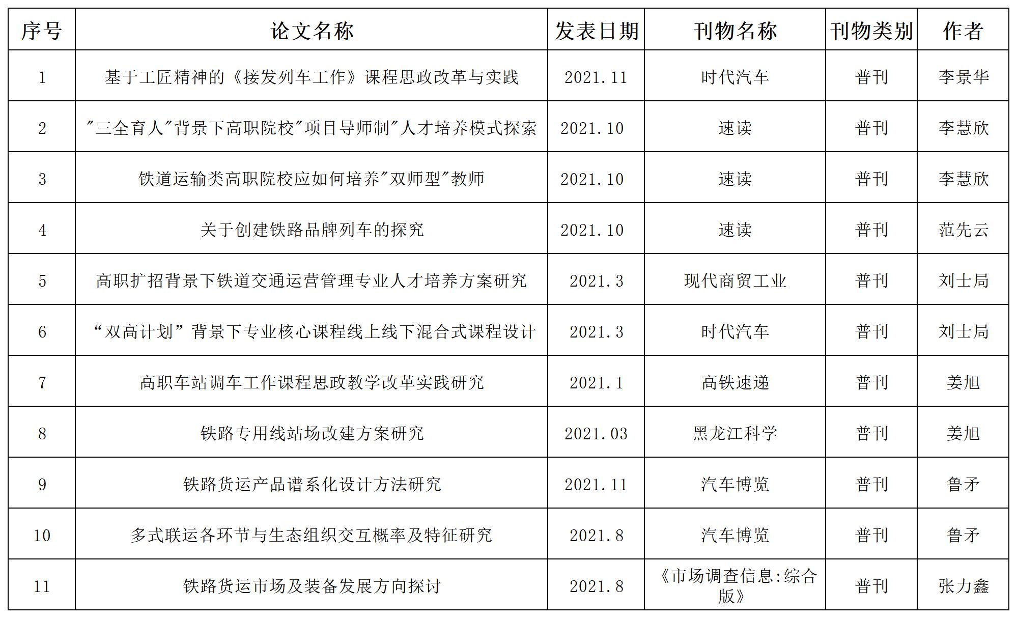 2021年铁道运输学院教师发表论文统计