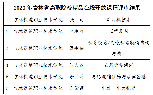 2020年7月,吉林省教育厅组织开展了精品在线开放课程认定工作,按照《关于开展2020年吉林省高职院校精品在线开放课程认定工作的通知》要求,经课程负责人申报,各教学单位推荐,教务处审核,由张力鑫老师负责的《铁路货运组织》课程参加评选并通过省级认定,被评选为吉林省高职院校精品在线开放课程。