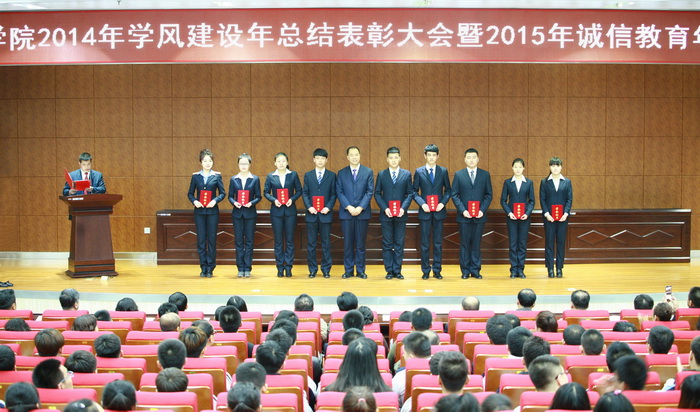 2014年是学院确定的“学风建设年”。一年来,全院各系师生求真务实、开拓创新、扎实工作,“学风建设年”活动收到了良好的效果,涌现出一大批先进集体和优秀个人。2015年,学院积极贯彻落实吉林省教育厅关于在全省高校开展大学生诚信教育年和诚信档案建设工作的通知精神,把2015年确定为“诚信教育年”。此次会议,全面总结“学风建设年”活动成绩,表彰在“学风建设年”活动中表现突出的先进集体和优秀个人,持续推动优良学风建设,营造了良好的育人氛围。同时,开展“诚信教育年”活动,进一步弘扬中华民族传统美德,培养学生诚信意识,强化诚信做人的观念,让校园诚信蔚然成风,是培育和践行社会主义核心价值观的重要举措。