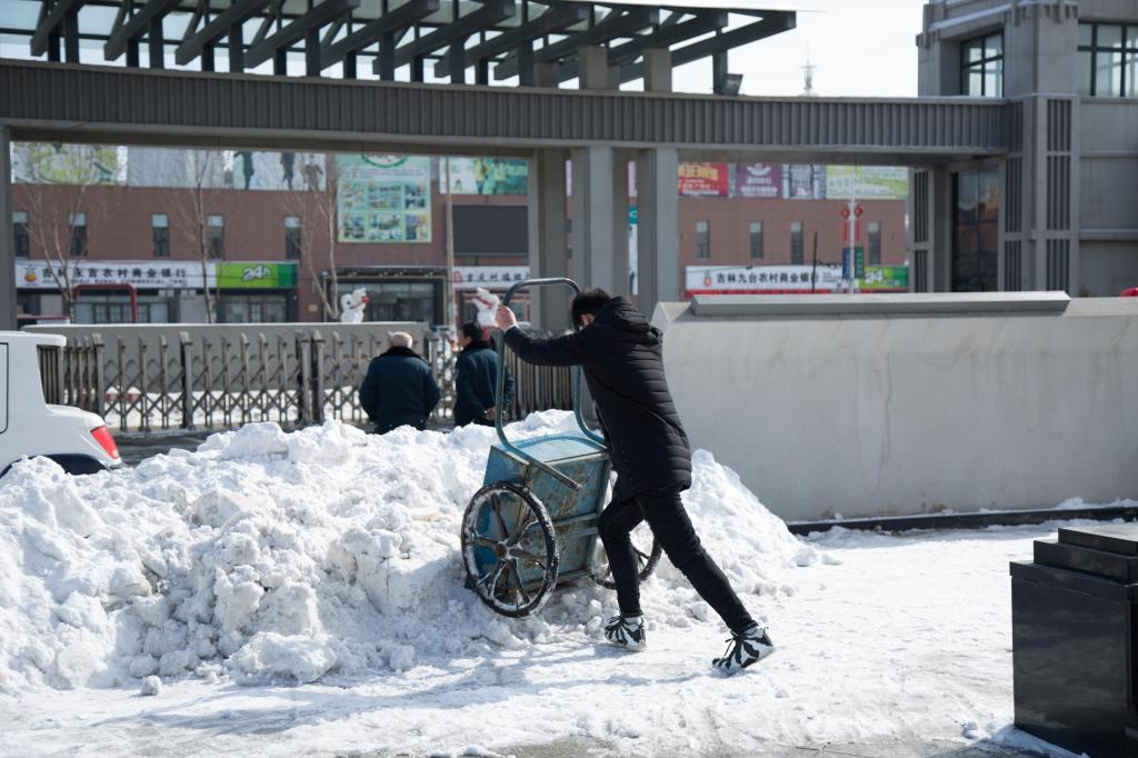 9日下午一点,天佑广场红旗飞扬,人头攒动,500余名团员志愿者到达现场,用青年人独有的青春活力融化冰雪,用积极热情的服务态度温暖校园。活动中,志愿者们挥着铁锹、推着小车,干劲十足,两个小时不到,近一万平米的天佑广场恢复了往日的宏伟和宽广。
