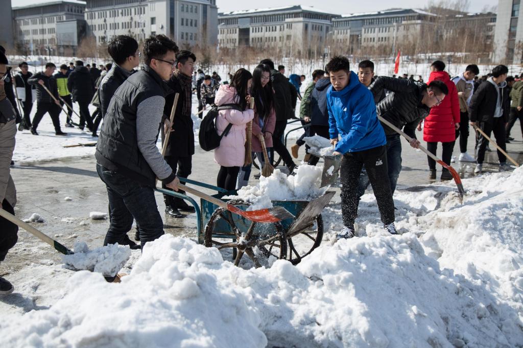 2018年是毛泽东同志发出“向雷锋同志学习”题词55周年,为深入贯彻落实党的十九大精神,进一步弘扬“奉献、友爱、互助、进步”的志愿精神,学院团委将3月9日作为“团员活动日”,组织各分团委及社团联合会共同开展了清除校园积雪活动。参加本次志愿活动的有学院团委全体成员、各分团委书记、社团联合会学生干部以及全院500余名学团干部。