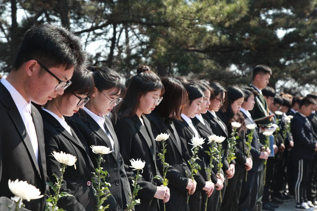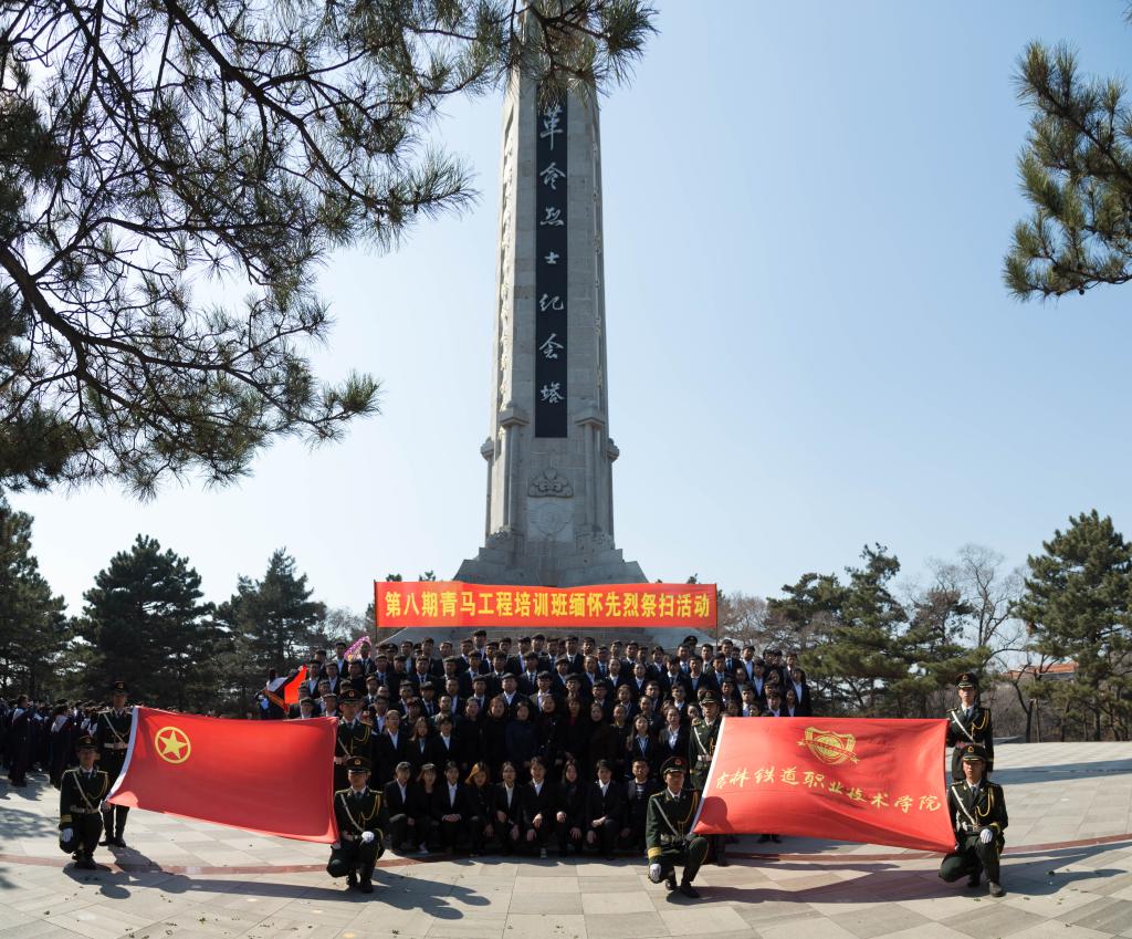 青松柳叶,草木菁菁。四月正值清明时节,为加强大学生的爱国主义教育,引导学生牢记革命历史,继承并发扬新时代革命精神,4月4日下午,学院团委组织学院第一期学习筑梦班、第八期青马工程培训班学员到吉林市革命烈士陵园开展“缅怀英勇先烈弘扬革命精神”主题祭扫活动,学院团委书记于威、各分院团委书记、学院团委全体教师、学院国旗护卫队学生干部代表以及第一期学习筑梦班、第八期青马工程培训班全体成员参加了本次活动。本次活动由学院团委陈思主持。