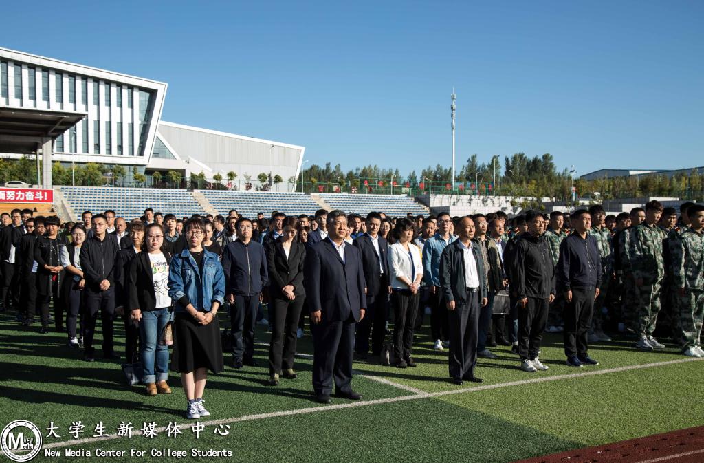 为认真贯彻落实党的十九大精神和习近平新时代中国特色社会主义思想,纪念九·一八事变87周年,培养大学生爱国精神和民族意识,增强“四个意识”和“四个自信”,9月18日,团委在学院田径场组织开展了“勿忘国殇,吾辈自强”纪念九·一八主题升旗仪式,学生处、团委全体教师,各分院党总支书记、学办主任、团委书记、辅导员、班主任老师和全体在校学生参加了本次活动,活动由团委陈思主持。