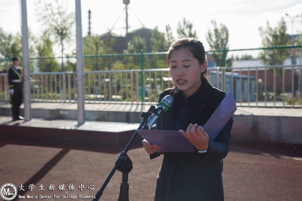 之后,铁道运输学院梁诗琪同学在仪式上发言,她从87年前的那段屈辱历史,讲到新时代中国特色社会主义迈上新征程,呼吁全体同学应当拒绝遗忘,承担起复兴伟业,要有信仰,听党话,跟党走,在追逐、实现中国梦中绽放青春光芒。
