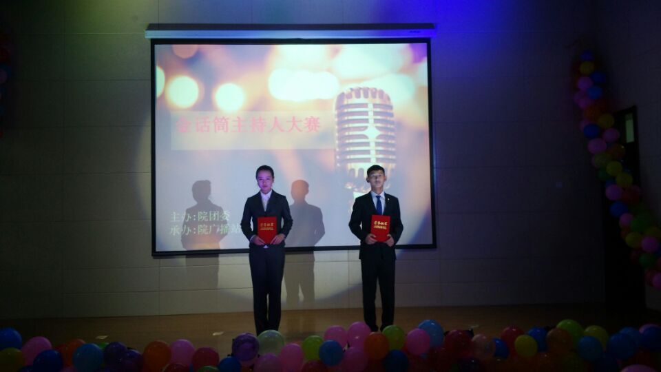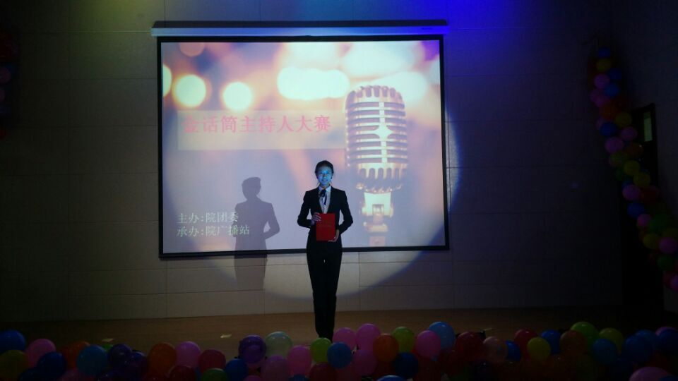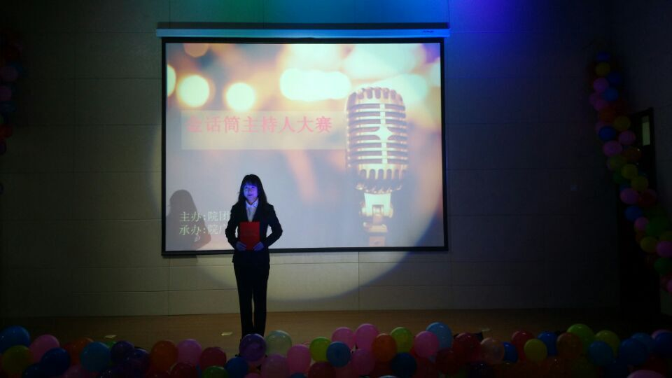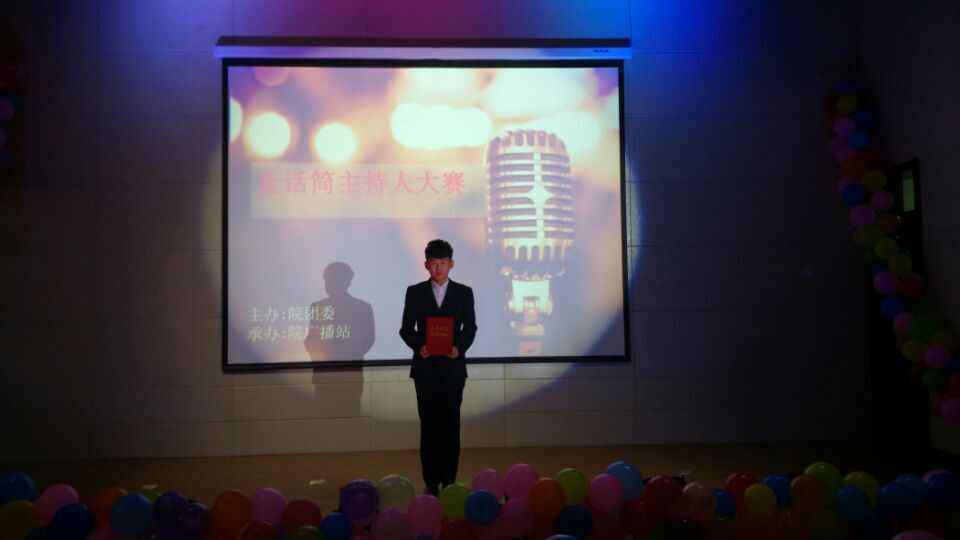 2015年10月30日下午,由学院团委主办、广播站承办的“金话筒”主持人大赛决赛在培训中心报告厅举行。学院团委书记盛继前、党委组织部组织员韩阳、各系学办主任及团委书记莅临比赛并担任评委。
