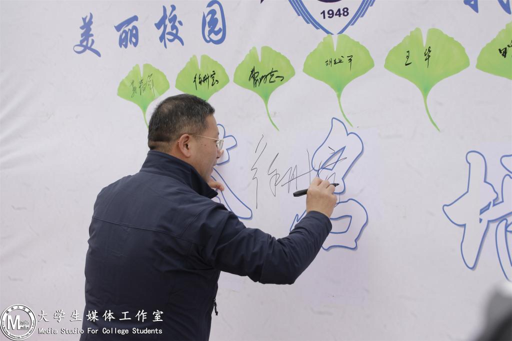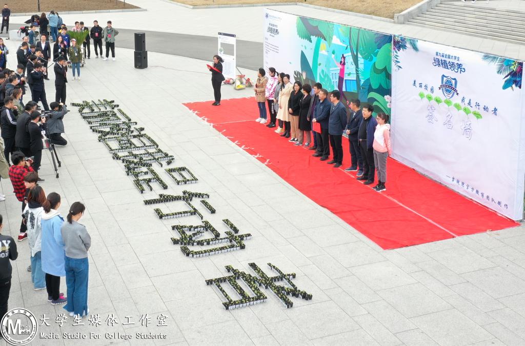 活动中,党委副书记徐彤宝宣布“第九届全国大学生绿植领养www.yuebo136.com 站”活动正式启动,并现场签名,助力学生活动。