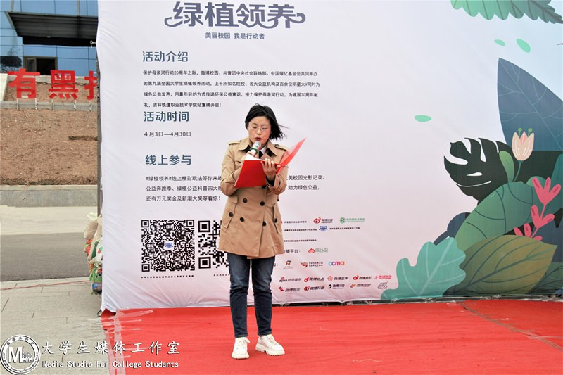 团委书记于威在活动中发言。她强调,“美丽校园,我是行动者”是本次活动的主题,鼓励青年学生共同加入绿色校园的建设中,用实际行动,为建成富强、民主、文明、和谐、美丽的社会主义现代化强国贡献自己的青春力量。