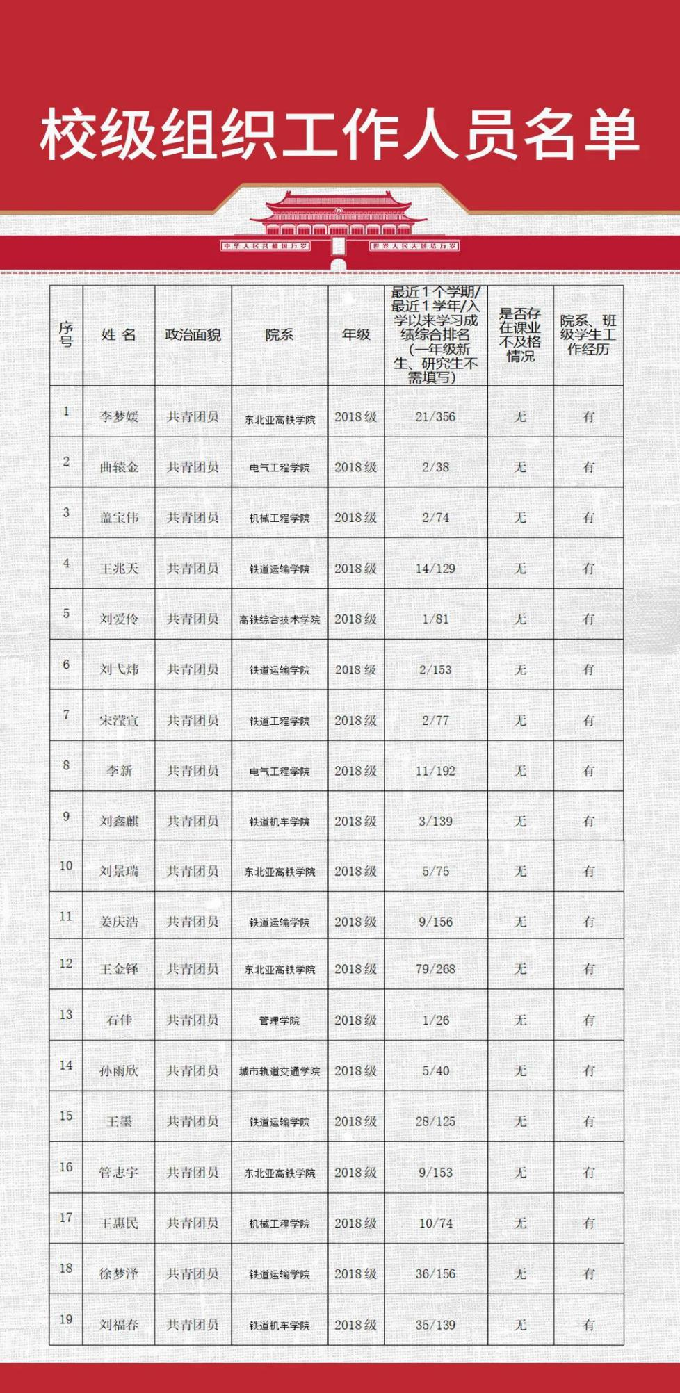 校级组织工作人员名单