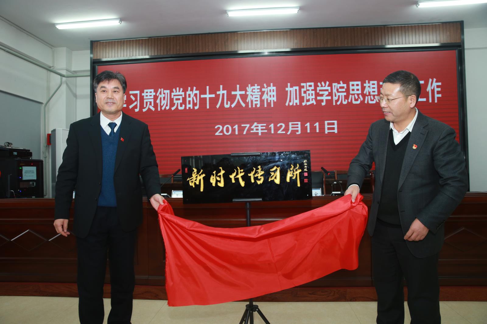 | 学院党委书记王喜库、党委副书记徐彤宝为“新时代传习所”揭牌 |
