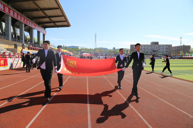 开幕式上,伴随着慷慨激昂的乐曲,国旗护卫队、彩旗队、花束队、各总支代表队、各学院师生代表队依次走过主席台,接受大会检阅, 展示了吉铁院人的蓬勃朝气和飒爽英姿。庄严的升旗仪式结束后,运动员代表、裁判员代表分别发言。