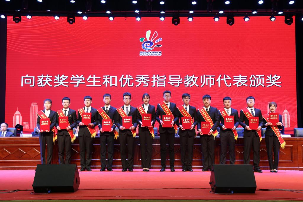 会上,全国第六届黄炎培职业教育“杰出教师”奖获得者、吉林信息工程学校钮立辉老师作事迹报告。副校长王华宣读《关于表彰在2018年度国赛、省赛、第七届技能节竞赛中获奖学生和优秀指导教师的决定》,与会领导向获奖师生颁奖。