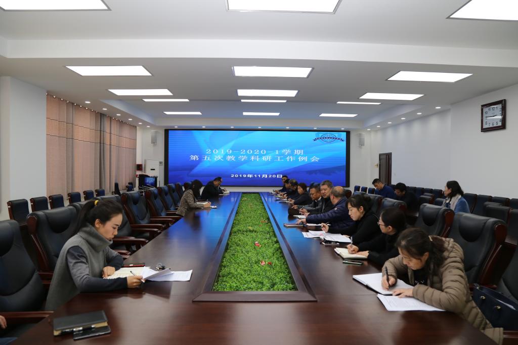 11月20日,学校本学期第五次教学科研工作例会在行政办公楼三楼第一会议室召开,各教学相关部门负责人参加了会议。会议由副校长张辉主持。